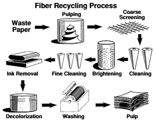 Simply put, fiber recycling is a specialized process in which office wastepaper is used to produce clean, recycled pulp that can be used to make recycled content paper and paperboards. At a Recycling Plant, located in Franklin, VA, more than 400 tons of mixed office waste, the equivalent of 80 million sheets of 8.5" x 11" paper, can be processed daily. From that, 300 tons of 100% post-consumer pulp is made for producing recycled content business and printing papers and bleached paperboards... all of which perform like non-recycled products.